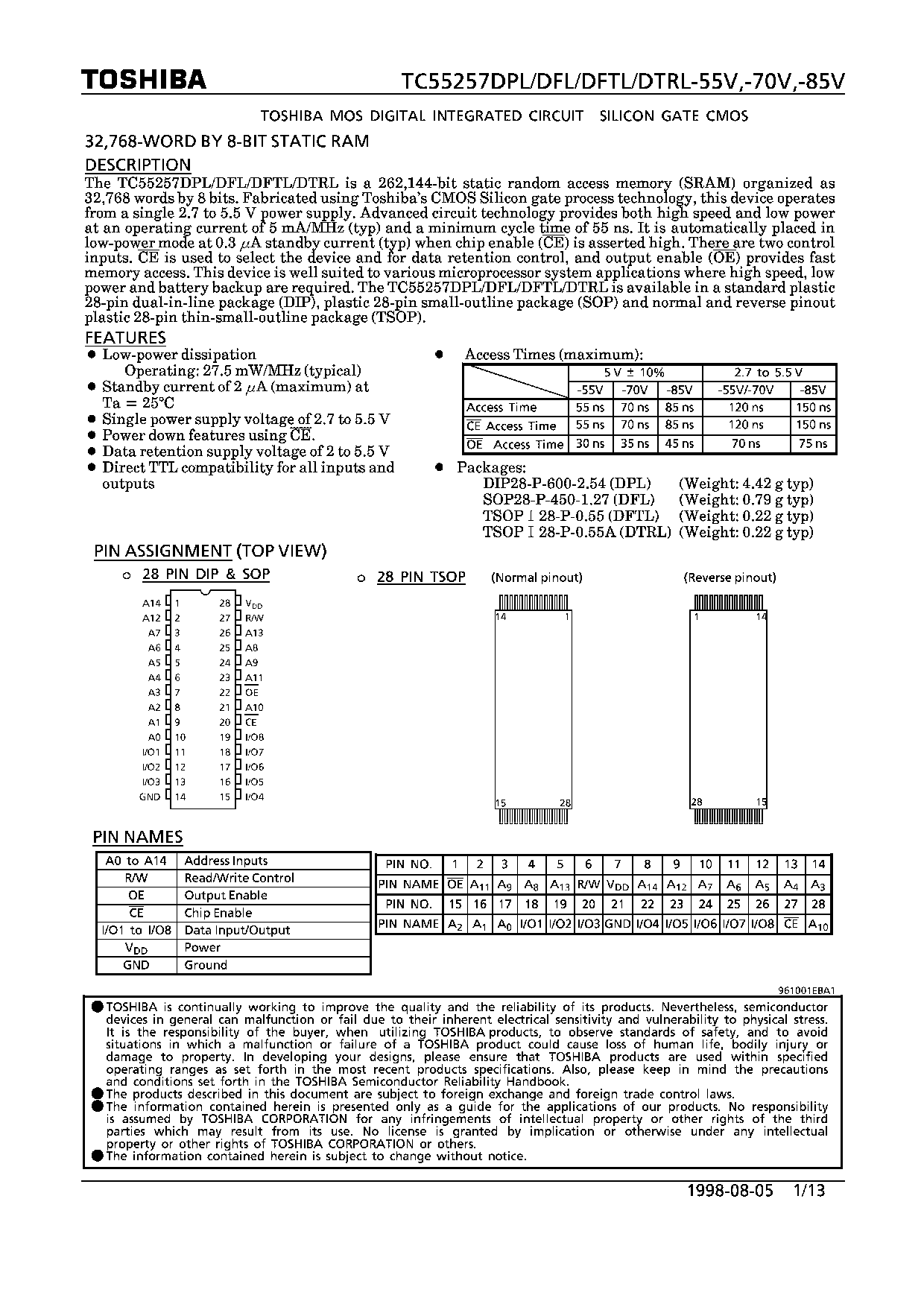 tc55257dfl-85v 最低价格10.00元 ,最高价格20.00元 ,平均价格 14.33元
